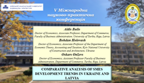 – Aldis BULIS, доктор економічних наук, доцент кафедри комерції, Oskars ONŽEVS, доктор економічних наук, асистент кафедри комерції факультету бізнес-адміністрування Університету Туріба, Рига, у співдоповіді з Bohdan HOLOVASH, к.е.н., доцентом кафедри ЕТОО КНУБА, що перебуває за програмою академічної мобільності у Латвії, презентували ґрунтовний порівняльний аналіз тенденцій розвитку малого та середнього бізнесу в Україні й Латвії, окресливши спільні проблеми та перспективи міжнародної кооперації.