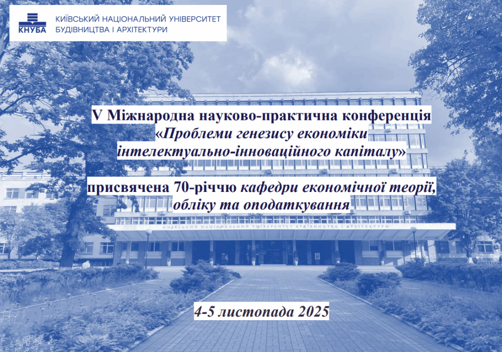 4–5 листопада 2025 року в Київському національному університеті будівництва і архітектури у змішаному форматі відбулася V Міжнародна науково-практична конференція «Проблеми генезису економіки інтелектуально-інноваційного капіталу», присвячена 70-річчю кафедри економічної теорії, обліку та оподаткування.