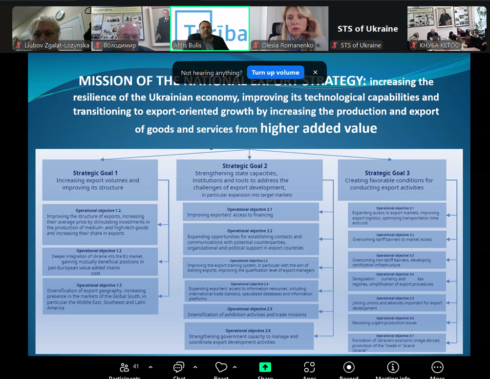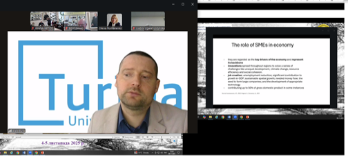 – Aldis BULIS, доктор економічних наук, доцент кафедри комерції, Oskars ONŽEVS, доктор економічних наук, асистент кафедри комерції факультету бізнес-адміністрування Університету Туріба, Рига, у співдоповіді з Bohdan HOLOVASH, к.е.н., доцентом кафедри ЕТОО КНУБА, що перебуває за програмою академічної мобільності у Латвії, презентували ґрунтовний порівняльний аналіз тенденцій розвитку малого та середнього бізнесу в Україні й Латвії, окресливши спільні проблеми та перспективи міжнародної кооперації.