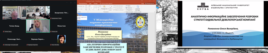 Олеся РОМАНЕНКО, к.е.н., доцент кафедри товарознавства та комерційної діяльності в будівництві КНУБА зосередила увагу на аналітико-інформаційному забезпеченні стратегій будівельних девелоперських компаній, що сприяє підвищенню ефективності управлінських рішень.