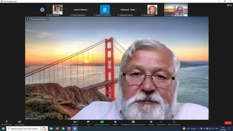 Завідувач кафедри залізобетонних та кам’яних конструкцій КНУБА д.т.н., професор, Олександр Дмитрович Журавський виступив з доповіддю «Наслідки рашистської окупації територій та об’єктів інфраструктури».