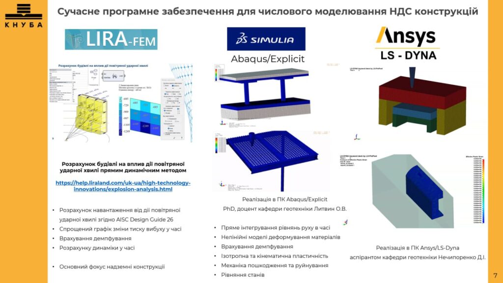 Нещодавно виконана робота є підтвердженням того, що школа розвивається. Під керівництвом завідувача кафедри Носенка Віктора та молодих науковців Кашоїди Остапа, Гаврилюка Олександра виконане моделювання роботи захисних фортифікаційних споруд цивільного населення. За результатами розрахунків обрано оптимальне та раціональне рішення. Робота науковців відмічена почесною грамотою Конфедерації Будівельників України.