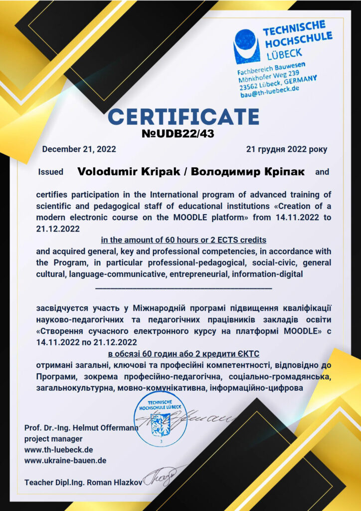ПІДВИЩЕННЯ КВАЛІФІКАЦІЇ КРІПАК В.Д.